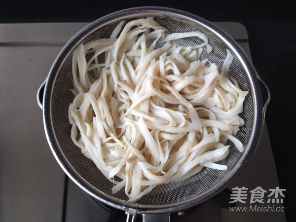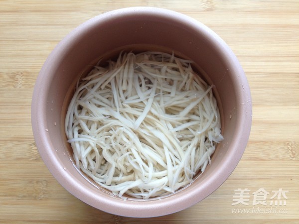 8.將煮熟的杏鮑菇放入冷開水中過涼