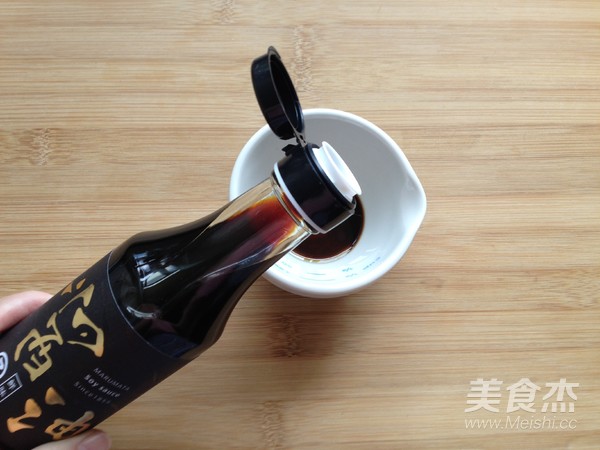 2.先來調汁,碗中放入陳醋、糖、芝麻油和又伊鮮鮮醬油,拌勻備用