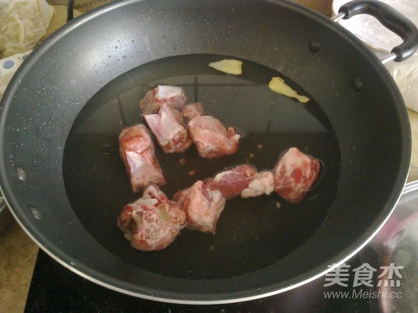 排骨冷水下鍋,加兩片姜,煮到水開后撈出。