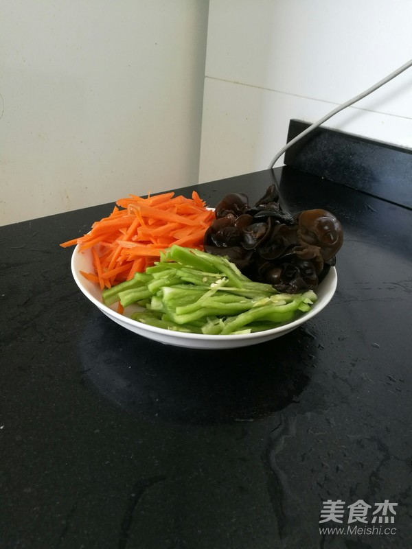 準(zhǔn)備材料,木耳(水發(fā)),胡蘿卜,青椒切絲
