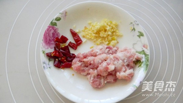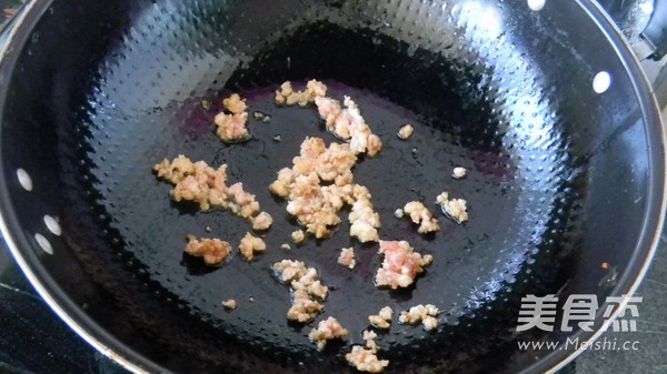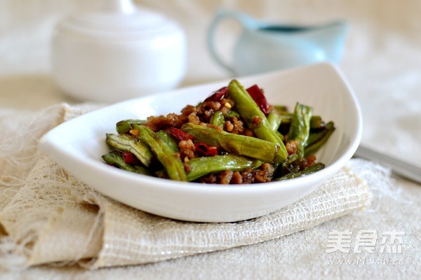 鍋內入油,比平時炒菜量多一倍,將四季豆煸過,盛出