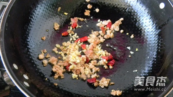 加入蒜蓉和干辣椒繼續翻炒出香味
