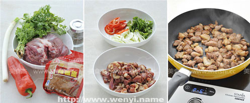 2、做這道菜,羊肉一定要切成1厘米大小的丁,而不要切片。如果切片,肉中的水分很容易跑掉,容易炒老,口感不好。