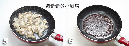 5.鍋內(nèi)熱植物油,放入雞塊滑炒至變色盛出備用