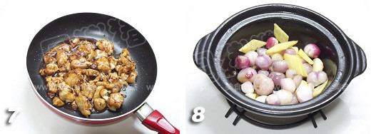 1、 此菜選雞最好選嫩的子雞,而且炒的時(shí)間不易過長(zhǎng),雞塊轉(zhuǎn)成白色即可。因?yàn)檫€要輕過砂鍋的二次加熱,不用怕不熟;