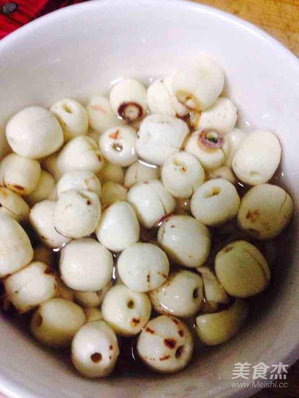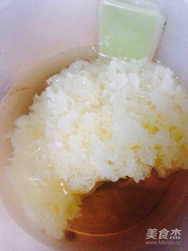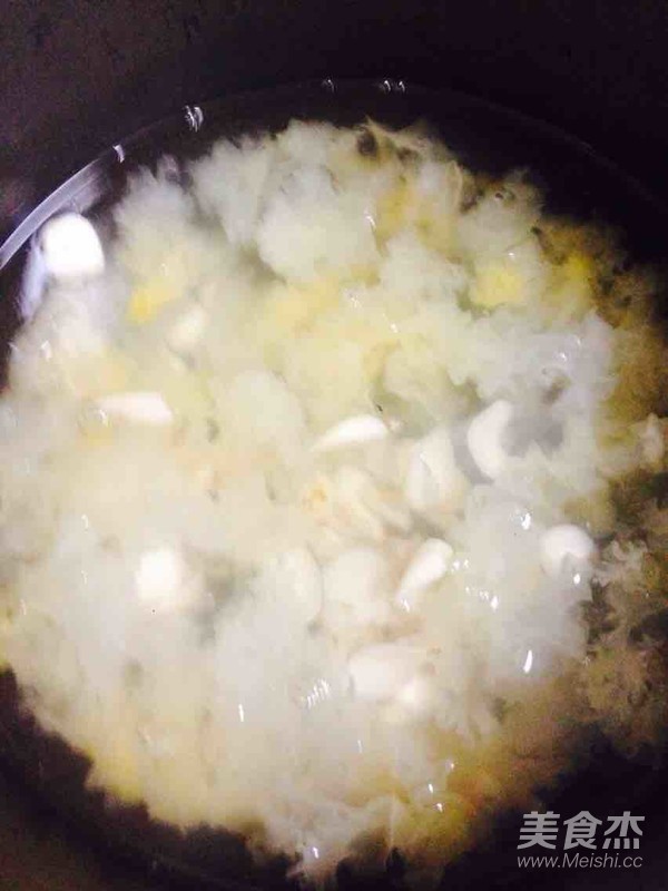 把銀耳,蓮子和百合放入鍋中,加入適量的水和冰糖