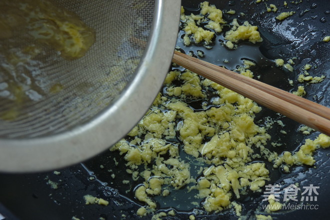 倒出多余的油,下蝦仁炒熟,盛起待用
