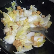 放入小豆腐果,翻炒幾下,放鹽后,在爆炒十幾下,放些少許的水,等鍋中的水快沒時,盛盤即可