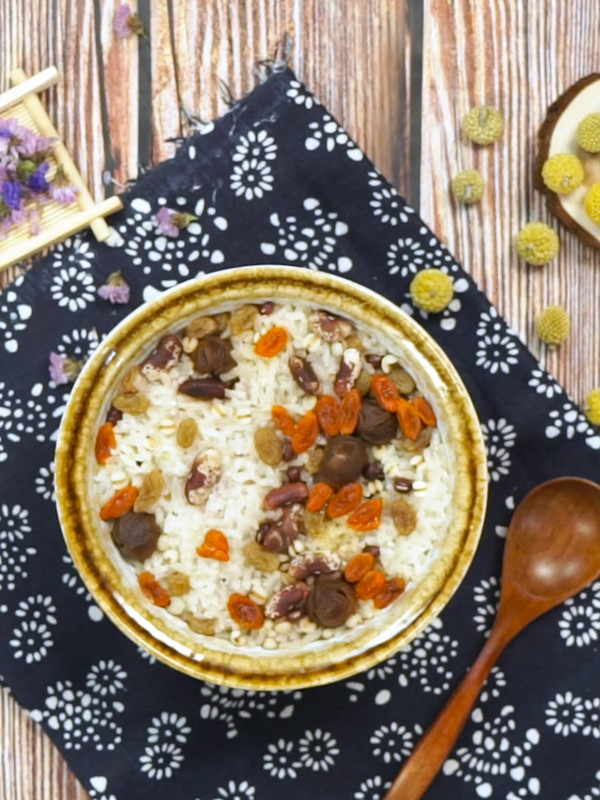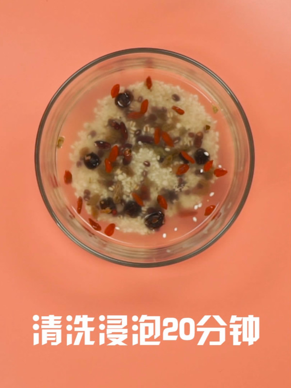 加入枸杞、葡萄干,加水清洗浸泡20分鐘