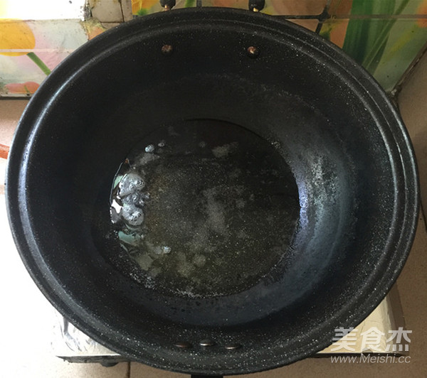 鍋中注入食用油,撒精鹽。