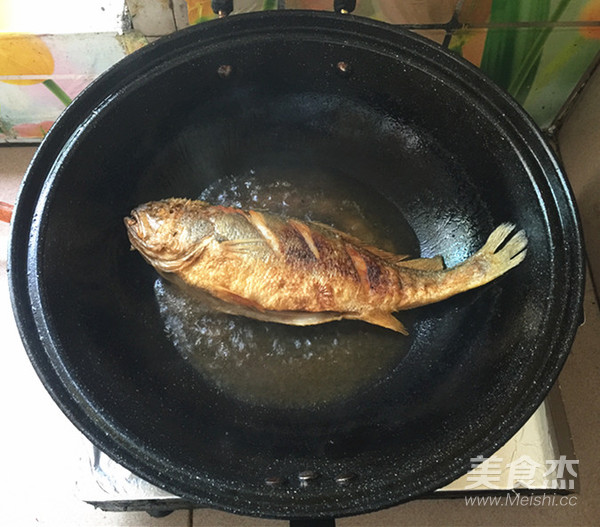 7成熱的時候,下腌好的大黃魚。