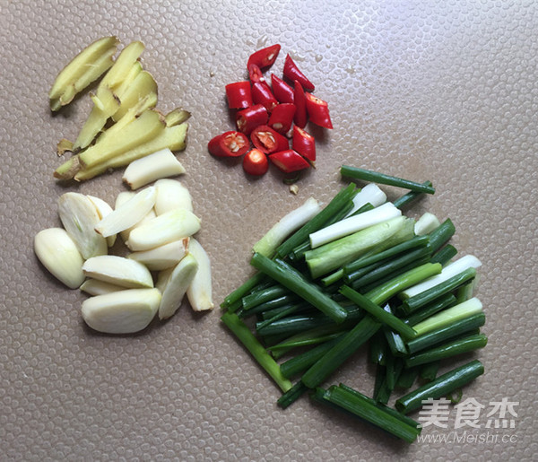 生姜,大蒜,香蔥,小米椒全部改刀。