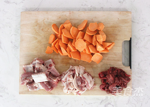 1.將五花肉洗凈切片,牛腱子肉切片,排骨切成小段(買肉的時候可以讓賣家切的),紅薯切塊