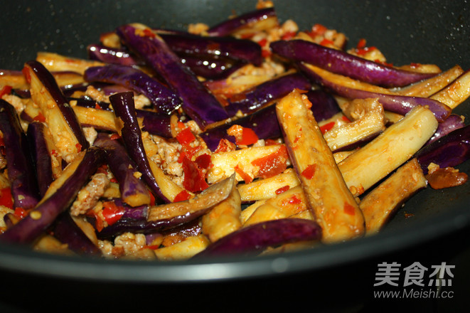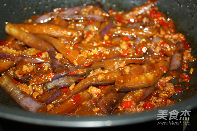 12.打開鍋蓋后茄子已經比較軟爛,這時再加2湯匙水淀粉,快炒收汁。
