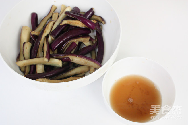 4.腌好的茄子會出很多水,把水分擠干,留茄子待用。