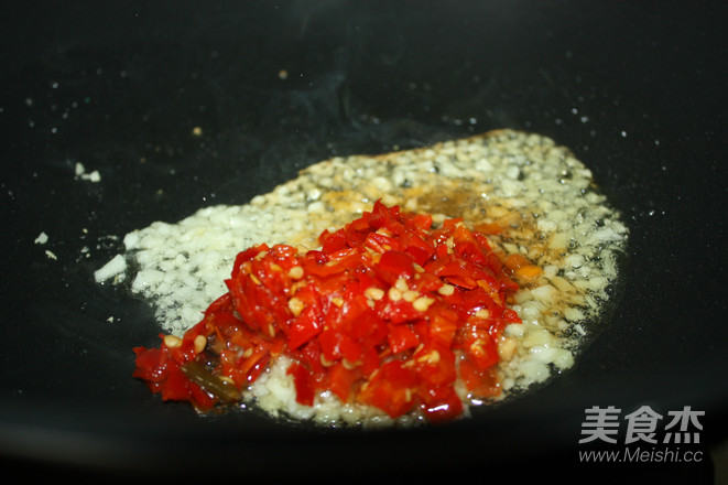 5.熱鍋加2湯匙植物油,下姜蒜末小火炒香。