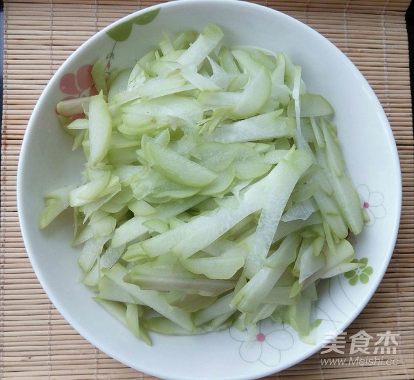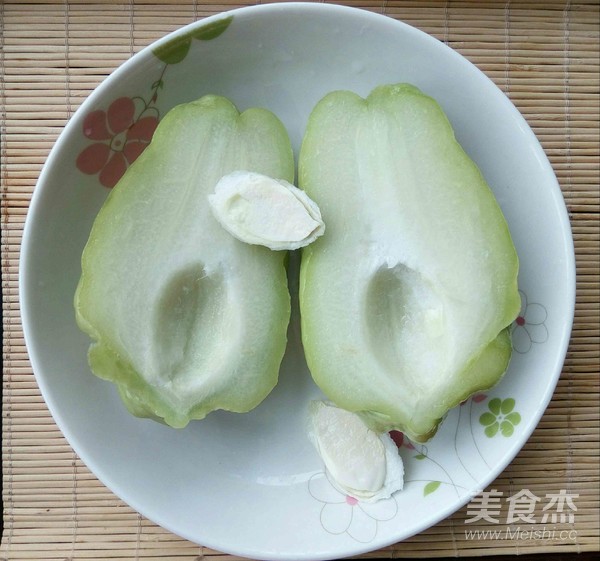佛手瓜洗凈,順長切成兩半,去掉中間的核備用。