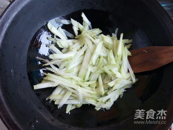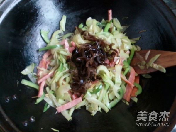 泡好的木耳切成絲。
