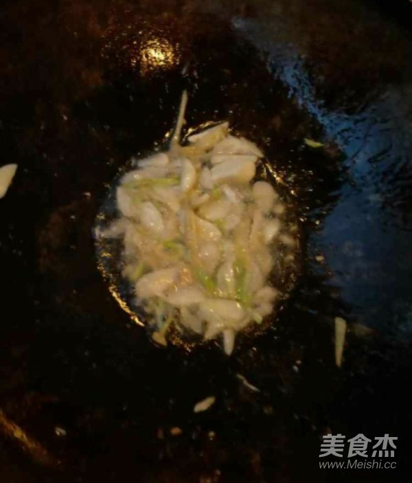 放肉翻炒,加入調(diào)味品翻炒,水淀粉勾芡。
