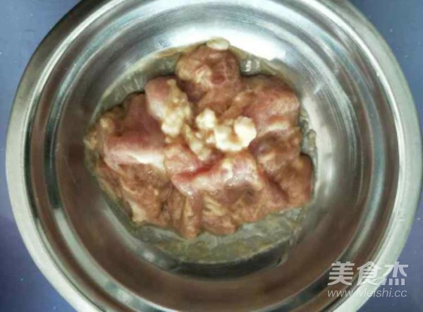瘦肉切片,加少許鹽、糖、水淀粉用手抓勻,再加少許油抓勻。