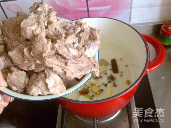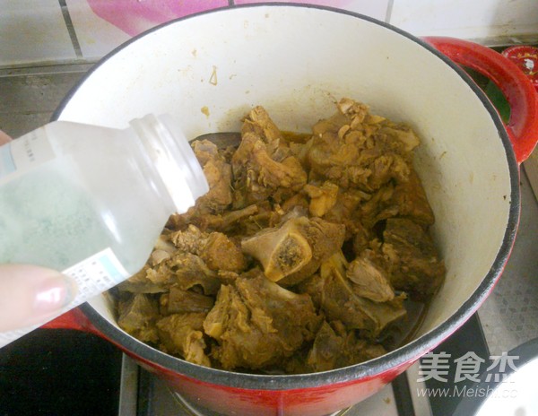 加入啤酒、紅燒汁、料酒,蓋上蓋子小火燉煮一小時。
