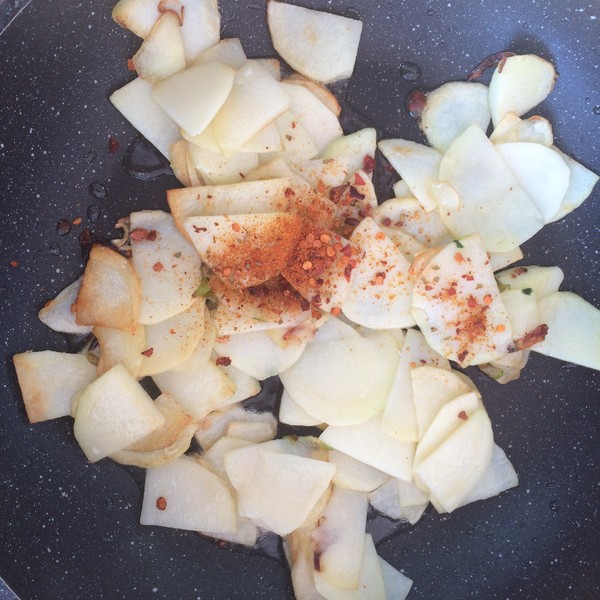 放入土豆片進行翻炒。