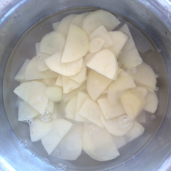 用水淘洗兩遍,去除土豆表面的淀粉。
