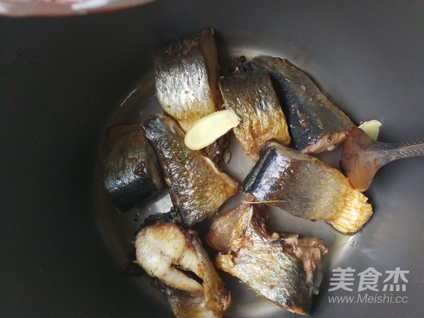 將魚和泡好的黃豆放在電高壓鍋里,加大料和姜片