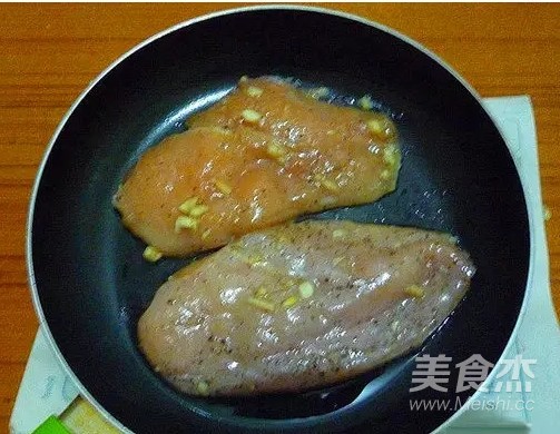 用手按摩雙面,為了讓雞胸肉腌制的更好