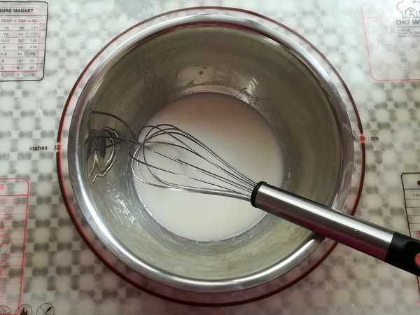 找一個干凈的盆子,倒入牛奶,玉米油和10克白砂糖