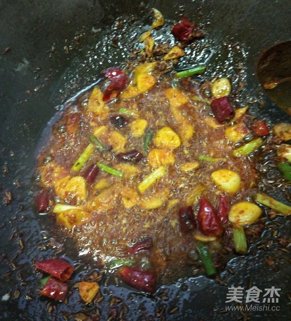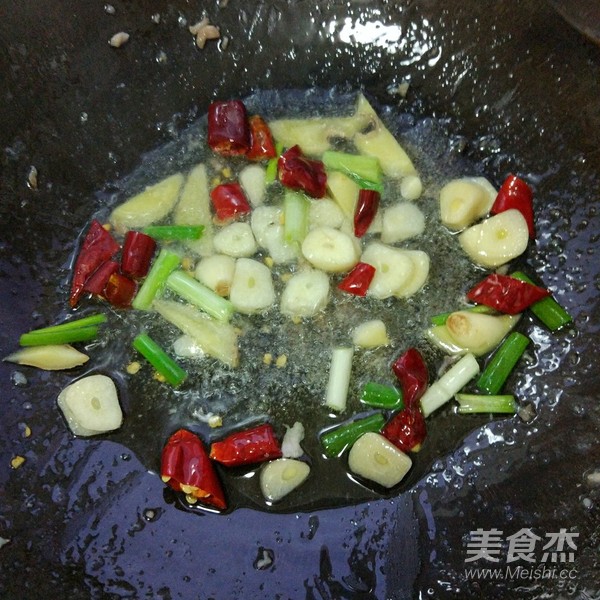 鍋里留底油,入蔥姜蒜,干辣椒爆香。