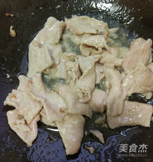 炒鍋點火入油滑熱,入肉片滑炒熟,盛出。