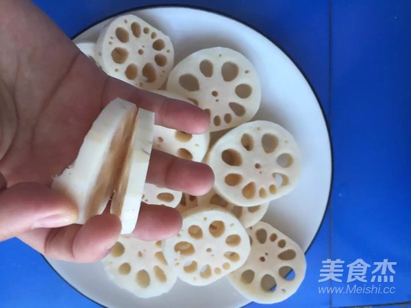 肉餡拌均勻,慢慢塞入切好的藕盒里。