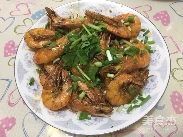 2鍋內放油,油熱放入姜絲,翻炒之后放入蝦,放鹽少許,然后放入椒鹽,翻炒之后出鍋。
