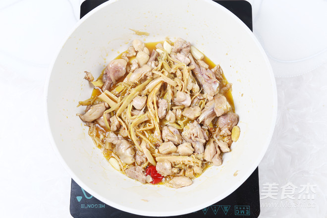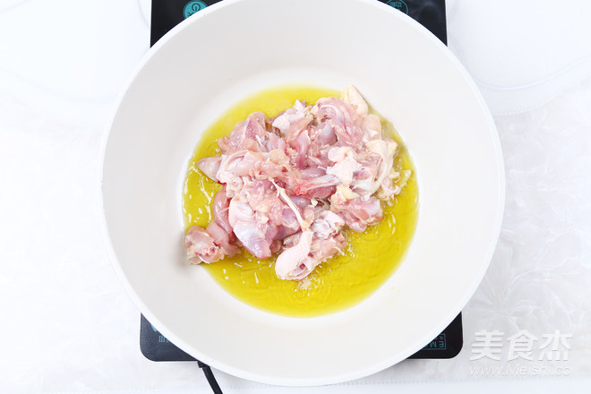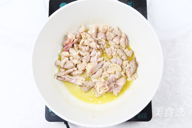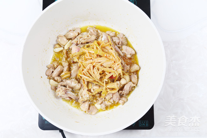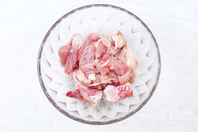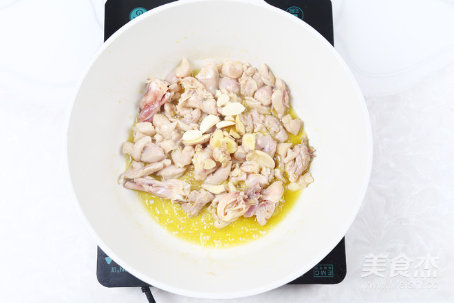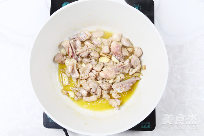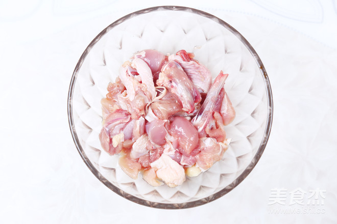 準備齊全食材,雞肉洗凈切塊,姜蒜切片