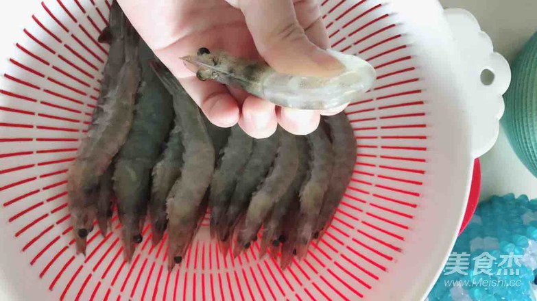 首先將大蝦清理干凈,蝦背部剪開,除去蝦線,背部剪開主要方便后面炸的過程和方便入味。