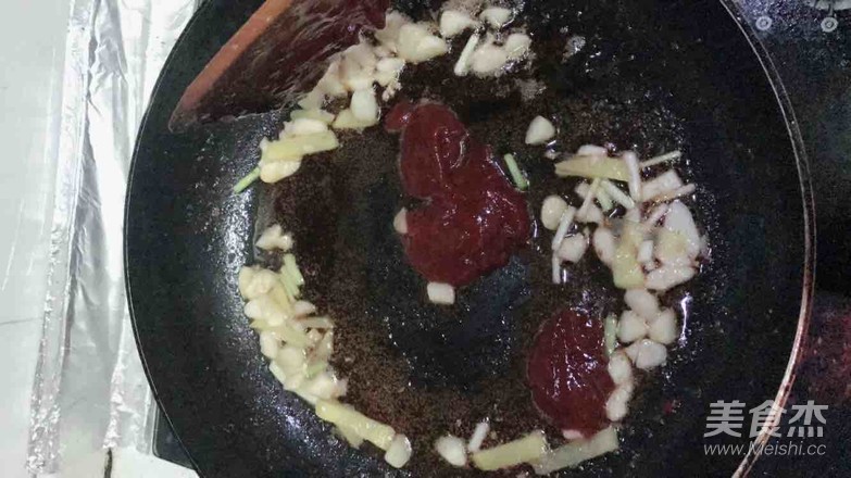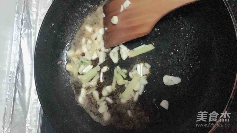 利用底油放入蔥姜蒜,此時一定要用小火,蔥可以放蔥白,綠色部分容易糊,最后放