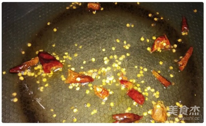5.鍋里放花生油,熱鍋爆辣椒,等辣椒微黑就可以了