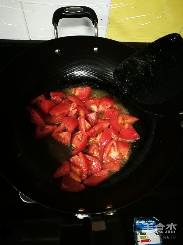 2.西紅柿炒出汁后盛出。不用洗鍋。