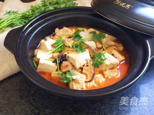 倒入豆腐,加適量水,燉十來分鐘,出鍋撒香菜