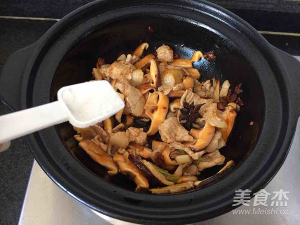 倒入香菇煸炒