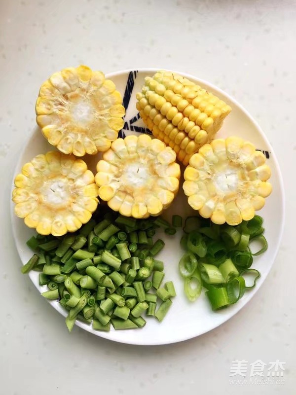 鮮玉米去皮洗凈切成小塊,蔥切蔥花,豆角洗凈切小段
