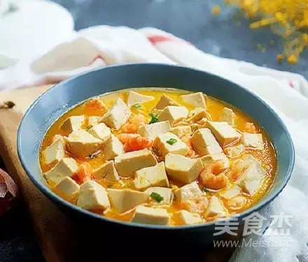 放入豆腐煮幾秒鐘,放入蝦仁煮開