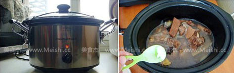 7.蓋上蓋子,將按鈕旋至慢火,12小時后,一鍋香噴噴的排骨湯就煲好了,加適量鹽調味后即可享用啦