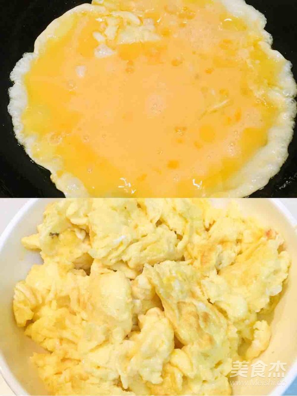 熱油,炒雞蛋,炒好后盛出放碗內。