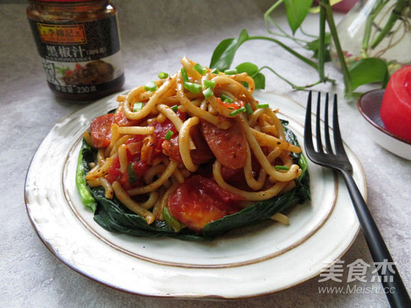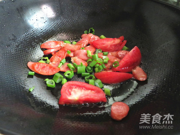 鍋中加油燒熱后放入香腸炒至兩面金黃
