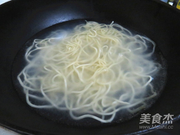 油菜放入煮面條的鍋中汆燙幾秒后撈出