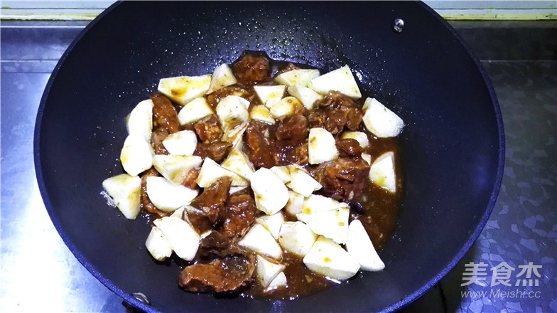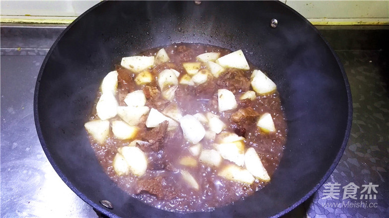 21.放入適量鹽,中火燉制20分鐘,收至湯汁濃稠時即可出鍋;