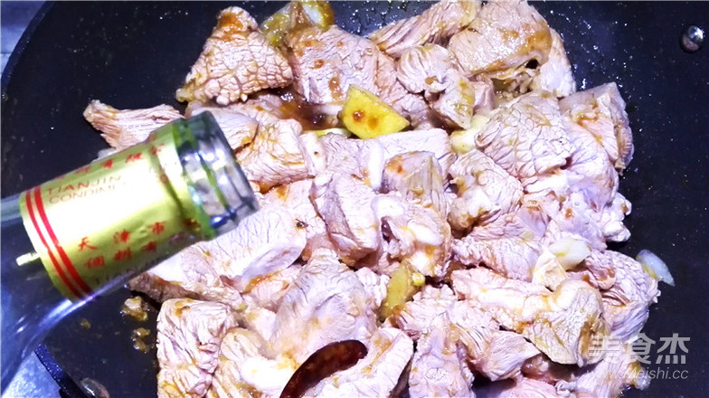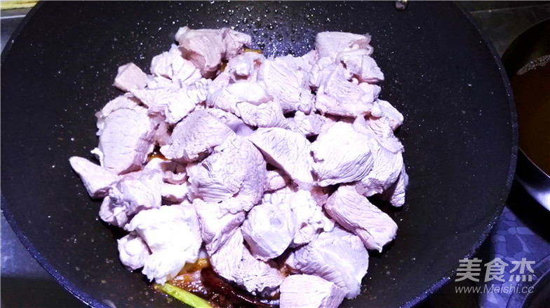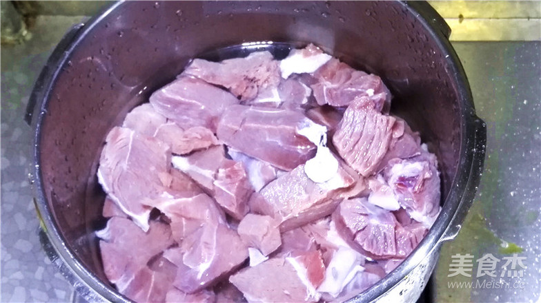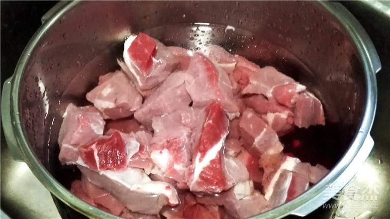 1.購買好的牛肉讓商家切好塊,回來放入鍋中;