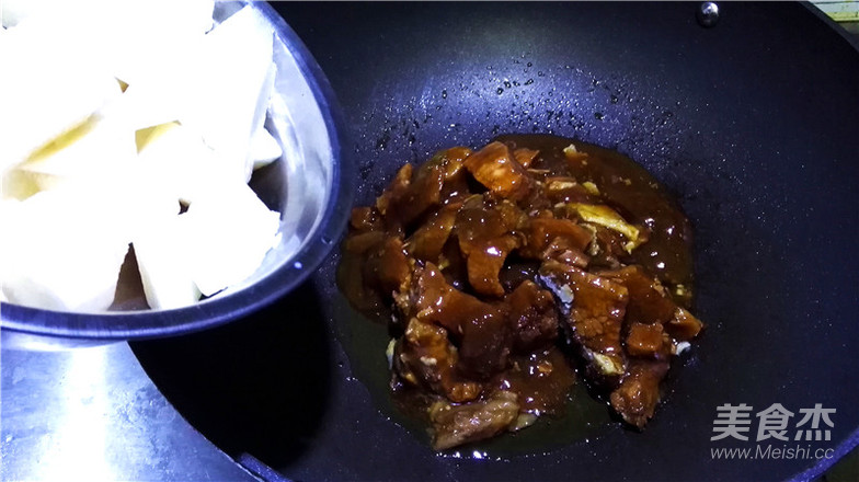 7.調料炒香后加入韓國燒烤醬小火炒制;